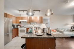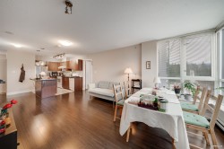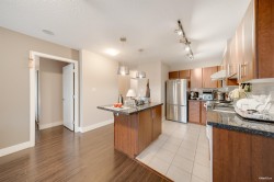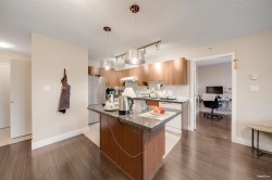 Bright and spacious 2-bed + den corner home featuring an open layout, floor-to-ceiling windows, and sweeping city and mountain views. The modern kitchen offers stainless steel appliances, ample cabinetry, and a functional breakfast bar. Bedrooms are thoughtfully separated for privacy, and the den is perfect as a home office. Enjoy two full bathrooms, in-suite laundry, and a covered balcony ideal for relaxing or entertaining. Located steps to Coquitlam Centre, SkyTrain, parks, and restaurants—convenience and comfort in one elegant package.