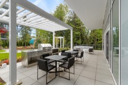 AIR CONDITIONED excellent condition JUNIOR 2 BED with breathtaking, unobstructed mountain views overlooking the prestigious Vancouver Golf Club, quality built by Anthem. Features functional layout, 9’ ceilings, hardwood floors throughout. Bedroom offers integrated millwork closet, and spacious den is ideal for extra bedroom, nursery, or home office. Gourmet kitchen includes Bosch S/S appliances, quartz countertops, full-height pull-out pantry, and ample storage space. Added benefit of low utility costs and under 2-5-10 Warranty. Hotel-styled amenities include gym, sauna, lounge with kitchen, courtyard BBQ area, workshop, playground, guest suite, car wash, bike repair, and 24/7 concierge. Conveniently walk to Lougheed Town Centre, SkyTrain, groceries, restaurants, schools, parks, and more!