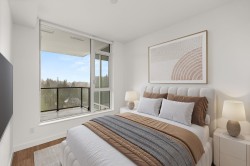 Welcome to Wynwood Green by Anthem Properties. This LIKE-NEW 2 bed/ 2 bath home offers 830 sqft of functional living space, timeless finishes, AC and UNOBSTRUCTED golf course views. Inside boasts a spacious living and dining area which opens up to the gourmet kitchen featuring two-tone cabinetry, S/S appliances w/ gas range & quartz waterfall countertop. This home offers an ideal split bedroom layout & a beautiful primary bedroom w/ walk in closet & ensuite. Enjoy your morning coffee on your covered balcony w/ incredible East facing views of Vancouver Golf Club. Great amenities incl. a gym, sauna, lounge, guest suite & more. Highly sought-after location, enjoy walking distance to Skytrain, Lougheed Town Centre, grocers, restaurants & parks. 1 parking + 1 storage locker completes this home.