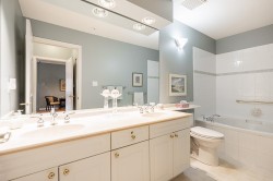 BEAUTIFULLY UPDATED LARGE, Bright, 2Bd 2 Bath CORNER SUITE OVERLOOKING LAFARGE LAKE, MOUNTAINS, COURTYARD FROM EVERY ROOM. Spacious Open Living & Dining Rm, Accommodates House Furniture. Huge Bright Open Gourmet Kitchen w/Eating Area & Family Rm w/Direct Views of LaFarge Lake, Mountains & Courtyard. Nicely Updated w/Granite Counter Top, Newer Appls, Sink, Faucet, Faux Wood Blinds + Lots of Cabinets. 9ft HIGH CEILING, Beautiful Crown Moulding & Baseboard w/Nice Laminate Flr & IN-FLR RADIANT HEAT THRU-OUT. Huge Master w/Walk-in Clst, Full Ensuite w/Dble Sinks & Large Soaker Tub. Private 2nd Bd on Opposite Side w/Full Bath & Shower. Amenities: Indr Pool, Hot Tub, Gym, Club House, Social Rm, Library, Workshop, 3 Guest Suite. STRATA FEE INCLUDES IN-FLR RADIANT HEAT, GAS, HOT WATER, AMENITIES