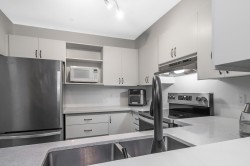 Bright and peaceful 1 bed, 1 bath, 739 sqft home in The Jefferson overlooking the tranquil Hoy Creek hatchery and forest. This spacious suite features a large living area with a gas fireplace, crown moulding, newer appliances, and a kitchen with quartz countertops and generous storage. Enjoy a private balcony surrounded by nature and an oversized bathroom with a deep tub. Ideally located in the heart of Downtown Coquitlam, just steps to SkyTrain, Coquitlam Centre, Lafarge Lake, the Aquatic Centre, and parks and trails. A quiet, secure community close to everything you need.