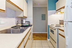 Cozy and bright 1-bedroom condo offering a smart, functional layout. This home features a spacious bedroom and the convenience of in-suite laundry. Centrally located, just steps to Douglas College, schools, transit, recreation, and shopping—everything you need right at your doorstep. Enjoy access to an outdoor pool, perfect for warm summer days. A fantastic opportunity for first-time buyers or savvy investors looking for a well-maintained, easily rentable unit in a prime location.