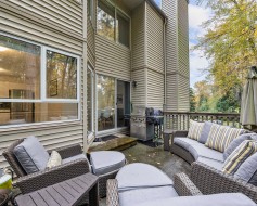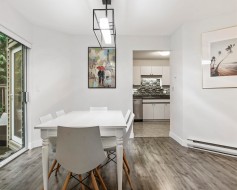 Discover this rarely available end-unit, two-level, south-facing, duplex style townhome tucked beside peaceful green space, offering the perfect balance of nature & city living. Bright, beautifully maintained, & move-in ready 3 BR, 3 bath home. Step inside to a spacious, light-filled LR with a cozy gas fireplace - perfect for relaxing evenings. The open DR area leads to a private 200SF patio, ideal for year-round outdoor enjoyment. Upstairs the expansive primary suite features a large ensuite and generous closet space and the 2nd BR & full bath. Downstairs, you’ll find a large 3rd BR & a full bath. The oversized (547SF) side-by-side double garage offers plenty of room for storage/workshop. This complex is located close to schools, parks, shopping, and transit. Don’t miss your chance.