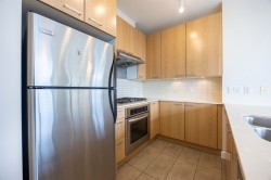 Central Location!!! Welcome to this modern and bright southeast facing 2 bed, 2 bath, 910 sq ft. This well designed home is filled with natural light, offering an open and efficient layout with fully renovation. A kitchen equipped with S/S appliances, gas cooktop, built-in microwave, and peninsula w/counter seating. The spacious living and dining seamlessly connect with access to a private, covered balcony. Close to everything in Coquitlam center. all levels of transit, trails, shopping, and parks.