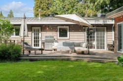 Opportunity knocks! Chineside home w/MORTGAGE HELPER and every kids DREAM YARD! This amazing family home is COMPLETELY RENOVATED throughout with too many upgrades to mention. Metal roof in 2012(lifetime warranty), new GAS RANGE, heated Kitchen floors upstairs and downstairs, wide plank white oak flooring, GAS hookup for BBQ on a sprawling freshly stained deck, Level 2 EV Charger in your double garage, NEST thermostat, voice activated lighting and more...check out the photos! Bonus flex space in the back yard (can be used as an office, media room, PILATES studio or detached guest space. 1 Bedroom Basement suite w/separate entrance & Gas Range. Short walk to Baker Elementary, Hillcrest Middle School & Dr. Charles Best Secondary. This is a must see!
