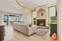 Priced below BC Assessment value. 3101 Klanawa Cres- a remarkable family home nestled in one of East Courtenay’s most desirable neighbourhoods. Beautiful mountain views & a private backyard set the backdrop for this property. At 3233 sqft, this home offers main-floor living & a walk-out basement. Throughout, extensive moldings, soaring ceilings, hardwood floors, granite counters, hot water OND, central vac, & irrigation system. The kitchen features stainless steel appliances, wood cabinetry, and generous workspace. The primary suite includes a soaker tub, walk-in shower, dual vanities, & a double-sided fireplace. For year-round comfort; a heat pump, & 3 gas fireplaces. The lower floor is an entertainer’s dream, rec room & theatre room, wet bar, and direct access to a covered patio. Included downstairs, 2 large bedrooms, & a storage room. The outdoor space has both sun & shade, lush landscaping, & a waterfall feature that ties it all together.