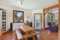 Discover the perfect blend of comfort, craftsmanship, & countryside living in this beautifully maintained 4 bed, 3 bath home with a dedicated office. Nestled in a peaceful rural setting spanning 4.78 stunning acres just minutes from the river, town, & local amenities, this property offers both privacy & convenience. Inside, 18 foot vaulted ceilings & large windows flood the home with natural light & frame sweeping views of the surrounding mountains. Handcrafted old growth fir accents & warm Loblolly pine flooring add character & charm throughout. The spacious primary suite includes a private balcony, while the open concept main floor opens onto a large patio perfect for outdoor relaxation and entertaining. The fully fenced yard features mature fruit trees & ample space to roam. Two barns with lean-tos & a generous workshop provide endless opportunities for hobbies, storage, or small scale farming. Enjoy sunny days, dark night skies, & the peace and quiet only the countryside can offer.