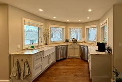 Welcome to one of Cranbrook’s most idyllic residential settings—a neighbourhood known for its beautiful, stately homes on wide, expansive lots that back directly onto community forest lands, offering unmatched privacy and natural surroundings. This home offers both grace & elegance having been renovated down to the studs in 2016, it showcases thoughtful design and exceptional attention to detail. The reimagined floor plan provides a seamless flow from room to room, while large windows and patio doors invite an abundance of natural light and frame the lush greenery that surrounds the property—effortlessly blending indoor and outdoor living. With 5 bedrooms, 3 bathrooms, this home offers generous space for family living and comfortable entertaining. Interior highlights include custom built-in cabinetry, engineered hardwood flooring, and a stunning granite island that seats eight—perfect for gathering.