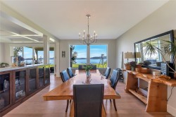 Architecturally designed, oceanfront luxury home awaits you on Vancouver Island. 4.8 peaceful acres of unobstructed waterfront /w beautifully landscaped vistas. Entering into the grand foyer you will naturally flow into the stunning living room with coffered ceilings, Turkish stone fireplace and unbelievable ocean views. The kitchen boasts high end SS appliances, custom maple cabinetry & granite which continues throughout the entire home including the oversized 3 bay garage. The stunning primary bedroom on the main floor has an extensive ensuite, spa-like shower, free standing tub, & chandeliered custom walk-in closet. Upstairs leads you to the sitting room /w walk out private sundeck and 2 expansive luxury bedrooms /w ensuites, 1 /w gym area & office, the other /w private, hidden spa. In the park-like setting, the 900 sq ft custom studio could easily be transitioned into your guest cottage. You simply will not find the peace, tranquility, & luxury of this one of a kind property.