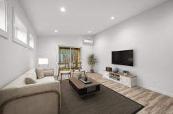 New and Improved, the Great Slaty Is beautiful 3 bed 2 bath home offering incredible value. Spanning over 1,300 sq ft, you'll be impressed with the spacious layout, contemporary design and high end finishings. Turn-Key ready with full appliance package, quartz countertops, heat pump, black accent fixtures, upgraded square male shaker kitchen cabinets, large island and well-appointed laundry room with storage. The open concept kitchen-dining-living area is light and airy with soaring 12 ft vaulted ceilings, 4 windows a large double patio door, great views over the forest. This home is upgraded with a gas fireplace. The showstopper Is the 14'x 10' covered rear patio, perfect for relaxing with family and entertaining friends. With a metal frame, metal siding and metal roof, maintenance Is minimal. Enjoy the 12' thick walls, high energy performance and low running costs. GST applies