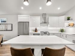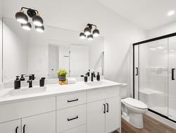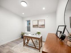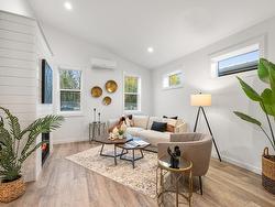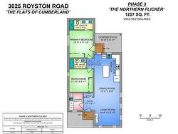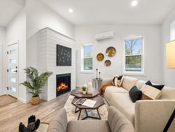 New and Improved, the Northern Flicker is a stunning 2 bed 2 bath home offering incredible value. Spanning over 1,200 sq ft, you'll be impressed with the spacious layout, contemporary design and high end finishings. Turn-key ready with full appliance package, quartz countertops, heat pump, modern kitchen cabinets, large island and well appointed laundry room with storage, sink and quartz countertops. The open concept kitchen-dining-living area is light and airy with soaring 12 ft vaulted ceilings and 7 windows for plenty of natural light. You'll love the large gas fireplace for efficient and cozy heat. The show stopper is the 14' x 10' covered rear patio, perfect for relaxing with family and entertaining friends. With a metal frame, metal siding and metal roof, maintenance Is minimal. Notice the thick 12' walls, high energy performance and low running costs. GST applies. The Flats of Cumberland is a brand new community of 56 beautiful homes.