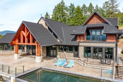 West coast contemporary masterpiece rests atop the hills of Maple Bay with breathtaking views of the Cowichan Valley! Drive over your own private bridge onto a stamped concrete courtyard and experience architecture at its finest! High ceilings (peaks at 29'), almost floor to ceiling low E tinted windows to take in the outstanding views, heated granite floors throughout the entire main level, a granite island kitchen to die for (24' x 20' + separate 10' x 12' pantry!), and a 1200+ sq ft primary bedroom wing with the most alluring ensuite & dressing room are a few outstanding features that this phenomenally spacious home offers. With 3 spacious bedrooms, 4 deluxe bathrooms and 2 stone natural gas fireplaces, there is room for every member of the family. Enjoy the infinity pool from the large concrete /slate decks, hot tub, shower room, large sitting area with the outdoor stone pizza oven. The South boundary adjacent is an Ecological Reserve. Far too many custom features to mention.