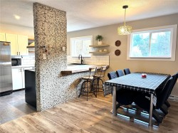Welcome to this beautifully remodeled 4-bedroom, 2-bath family home in the heart of Gold River. Perfectly blending modern style with a warm, homey feel, this contemporary gem offers comfort, functionality, and charm throughout. The bright, open-concept layout features all-new flooring, fixtures, and vinyl windows, with a stunning feature fireplace creating cozy ambiance in the living room. The brand-new kitchen shines with its live edge shelving, tile backsplash, sleek countertops and stone accent finishes. Both bathrooms have been tastefully updated, and the home includes new vinyl siding and an upgraded 200-amp electrical service. Step outside to a large deck overlooking the fully fenced backyard, access to park, complete with raised garden beds and extra storage. With a single-car garage, ample parking, and a great neighbourhood setting, this move-in ready home offers the perfect blend of style, comfort, and West Coast living. Arrange your private viewing today!