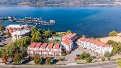 Live the ultimate Okanagan lakefront lifestyle at Lakeshore at Manteo! This luxurious 3-bedroom, 3-bathroom townhome includes your own private boat slip and lift, offering effortless access to Okanagan Lake right from your doorstep. Inside, you’ll find soaring ceilings and a bright, open-concept layout with an elevated kitchen and dining area overlooking the living space below. The chef-inspired kitchen features a Wolf gas range, premium appliances, elegant recessed wine display with accent lighting, wine fridge and quartz countertops, blending modern elegance with everyday functionality. Expansive folding glass doors open to a private patio overlooking Rotary Beach and the lake, creating a seamless indoor-outdoor living experience. Upstairs, the primary suite provides a true retreat with a private balcony overlooking the water—perfect for morning coffee or unwinding at sunset. Two additional bedrooms and a full bathroom complete the upper level. With built-in speakers throughout the home and patio, every detail is designed for entertainment and relaxation. There’s also parking for up to three vehicles, a rare luxury in a waterfront community. Enjoy resort-style amenities including an outdoor pool, hot tub, and lakeside fire pits—all just steps from the sand and shoreline. With direct access to Rotary Beach and Okanagan Lake in Kelowna’s coveted Lower Mission, you’re minutes from Gyro Beach, the Eldorado, and Manteo Resort—this is lakeside living at its finest.