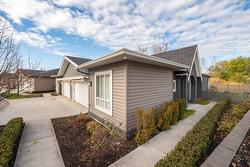 Welcome to the Brighton community! This beautifully maintained two-bedroom rancher with den is perfectly suited to families or those looking for a quality one level living home that offers comfort, convenience, and an unbeatable location. Situated just steps from the Greenway, H2O, the Public Library, and nearby parks, it also sits within proximity to excellent schools and has a wide range of recreation options. Inside, the open floor plan features a bright, spacious kitchen with modern white cabinets, a gas range, and a generous island that flows naturally into the dining area and sunlit living room. A cozy gas fireplace anchors the space, while a large sliding door opens to the fully fenced backyard backing onto peaceful Thompson Creek. With a gas BBQ line, room for entertaining, and a lawn for kids and pets, it’s an ideal living space. The den off the kitchen/dining room works perfectly as a home office or optional third bedroom. The primary suite offers large windows, a walk-through closet, and a luxurious 5-piece ensuite. A split floor plan places the second bedroom and bath at the front of the home—great for older children or guests. A double garage, two-car driveway, and a pet-friendly complex complete this family-friendly package.