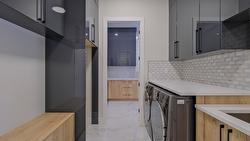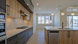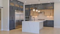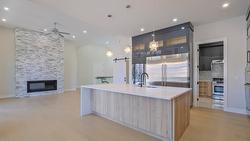 The gourmet kitchen is a chef’s dream, featuring a 60-inch fridge, custom two-toned cabinetry, Van Gogh veined granite countertops with a waterfall edge, and a butler’s kitchen for effortless entertaining. Entertain friends and family in the theatre room and bar, complete with high-end surround sound, or enjoy the outdoors on the massive 18x18 deck with space for a future pool, hot tub hookup, and natural gas BBQ.