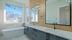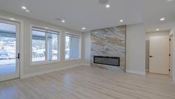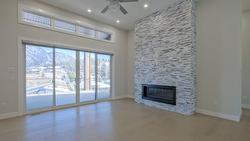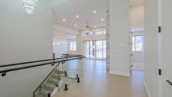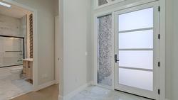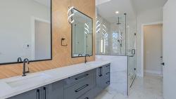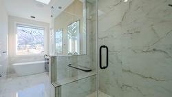 Practical luxury abounds with a triple-car heated garage and roughed-in EV charger, modern fireplaces, feature walls, custom lighting, high-end flooring, granite bathrooms, and custom built-ins throughout.