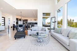 Perched atop the Bear Mountain golf course community, behind the Exclusive Gates of Compass Pointe, lies an unparalleled offering. Boasting sweeping views, modern finishes and soaring vaulted ceilings every principal room is positioned to capture the breathtaking expanse of the South Peninsula. From Baker to the Olympics, Downtown through the Strait, you’ll find your gaze impossible to break. If it does, and you peek inward, revel in the subtle elegance of a home thoughtfully designed for the utmost comfort and convenience. With open floorplan, a luxurious primary suite and advanced wireless systems, living in this sanctuary becomes effortless. The additional bedrooms, movie theatre and private gym are all situated on the lower level, providing perfect separation when desired. Outside, the enclosed balcony with heaters ensure year-round, weatherproof enjoyment, while the expansive yard and manicured gardens offer tranquil retreat. Don’t miss this rare gem—your slice of paradise awaits.