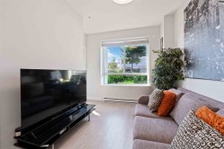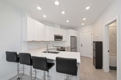Welcome to GENESIS - A contemporary living designed for comfort and convenience in the heart of Langley! Built in 2022, this bright 1 bed, 1 bath home offers an open-concept space with stainless steel appliances, quartz countertops, laminate floor in the kitchen/living area and carpet in the bdrm, in-suite laundry, and a cozy private patio for your morning coffee! This unit comes with 1 car parking and 1 storage locker. Building amenities include a gym, amenity room, mini-golf and garden area. Walkable to downtown Langley, No Frills, Save-On-Foods, Shoppers, library, Timms Community Centre, proposed 2028 Sky Train Station, shopping, restaurants and coffee shops. Bus stop right outside the strata unit. 2-5-10 warranty remaining! Call for your private viewing!