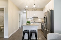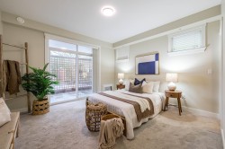 LOCATION LOCATION LOCATION! Welcome to the Georgia! South Facing Corner Ground Floor 2 Bedroom + Den, 2 Bathroom, 907 Square feet unit is centrally located and walking distance to everything city living has to offer. Step inside a warm freshly painted unit with features like white cabinetry, quartz counter tops, upgraded light fixtures, Stainless Steel appliances, laminate flooring, and A/C in the primary bedroom. Walk out to a private patio overlooking a garden and park. No need to use elevator or walk through the building - Especially Perfect for people with pets. Includes 1 Parking and 1 Locker. South facing for all day brightness. This unit is one of a kind!