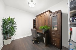 Exquisite Top-Floor Residence at The Kensington, Willoughby Town Centre. This 1,240 sq.ft. south-facing home offers a sophisticated open layout with 2 bedrooms + den, soaring 9-ft ceilings, and two private South facing sundecks. Elegant details include crown mouldings, a feature fireplace, and a refined neutral palette. The gourmet kitchen showcases a large island, quartz counters, and premium stainless steel appliances. Added conveniences: in-suite laundry with storage, two prime parking stalls (fits full-size truck), and a storage locker. Perfectly located steps from fine dining, boutique shops, transit, and Hwy 1 access. A rare opportunity for elevated living.