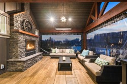 This custom-built Salmon River estate offers over 6,000 sq ft of luxury living, designed for family life and unforgettable entertaining. Step into the grand foyer to soaring 17’ ceilings and seamless indoor-outdoor flow with 12’ nano doors opening to your pool, hot tub, and heated patio with fireplace. The main floor features a formal dining room with dual fireplace, plus 3 bedrooms. Upstairs: 3 more bedrooms + loft. A bright ground level legal suite adds flexibility, with superior soundproofing. Set on a private panhandle lot, with plans for a detached shop (services ready). Truly one of a kind, call today to book your private tour.