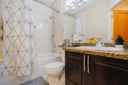 Welcome to Popular Yorkson, quality built luxury 2,000+sqft. townhouse! Upstairs 3 large bdrm & laundry rm. Master bedroom w/walk-in closet, central air conditioning, heated ensuite floor & anti fog mirror & oversized walk-in closet. Spacious main floor incl. fantastic kitchen w/huge walk-in pantry, living rm w/cozy fireplace, dining, family rm. High end finishes incl hardwood flooring, solid-core wood doors, soft close cabinets, SS appliances, granite counters, 9' ceilings. Huge bonus room on ground floor w/separate entrance, full bath and easily convertible to 4th bedroom. High efficiency furnace & on demand hot water system. Steps to Yorkson Creek Middle School, athletic park and dog park. 2 min drive to HWY1 and Carvolth Rapid-bus. Parking for 4 cars!!!