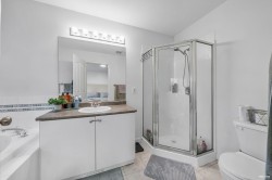 Turnkey & tastefully upgraded! This beautifully refreshed 5-bedroom, 4-bath residence showcases a bright open layout with modern vinyl plank flooring, recessed LED lighting, and fresh interior paint. The stylish kitchen features stainless steel appliances and flows effortlessly to a sunny, south-facing backyard—perfect for gatherings. Upstairs offers 3 generously sized bedrooms, including a primary suite with its own full ensuite. Recent improvements include a newer roof (approx. 7 years old), a brand-new deck, and a freshly painted exterior. The lower-level 2-bedroom suite with private entry - ideal for added income or mortgage help! Conveniently close to schools, cafés, and public transit. A must-see home!
