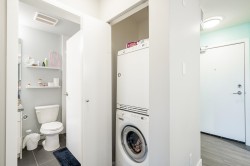EDGE ON EDGE - Immaculate South-East facing, bright 4th floor 1 BED+PLUS DEN /1 Bath suite in the popular Edge on Edge built by Maclean Homes! Open concept floor plan features 8' ceilings, granite counters, undermount sinks, kitchen w/shaker cabinets & S/S appliances. Large master with walkin closet & cheater ensuite. Front loading in-suite laundry & large den/office space. Covered deck with street parking all around, secure underground parking, 2 pets & rentals allowed! Steps to Shopping, Transit, Restaurants, Rec Center, gyms and Schools! Call today to book your showing!