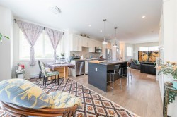 Your perfect family home awaits in this spacious 3-bed, 3-bath end-unit townhome at the sought-after Village Green! This walk-in townhouse offers direct access straight into the living space. Tucked away on a quiet dead-end street with minimal foot traffic, it backs onto serene ALR land, ensuring complete privacy with no neighbours behind. Enjoy the convenience of driveway parking with an attached garage, plus direct access from the garage to the backyard. There’s also plenty of street parking just steps away. Inside, you'll find 9ft ceilings, a modern design, and laminate flooring throughout, with elegant French doors leading to the outdoor space. Upstairs features 3-bedrooms, including a primary suite with an ensuite, and a full laundry room. Just minutes from shopping and schools.