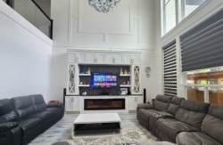 This two-story house is really stunning, and it is the epitome of luxury! Chanel lighting, Italian tile, Berkley doors, Zebra shades, and a luxurious entertaining area with a vaulted great room, a gourmet kitchen, a spice kitchen, a living room, and a dining room are just a few of the features available! There are four bedrooms, three bathrooms, and a media area on the upper floor. For anyone who is looking for something exceptional, this home is one of a kind and features a legal two-bedroom level entry suite, a double garage, an enormous driveway that can accommodate six cars, and a lavish stone facade!