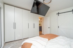 Nestled on 1.64 acres of lush greenery, this beautifully renovated country home offers serenity just 10 minutes from city amenities. Inside, the home features stunning upgrades: a stylish kitchen with white quartz countertops, subway tile backsplash, solid wood cabinets with black hardware, and stainless steel appliances. Bathrooms showcase trendy blue vanities, adding a rustic charm. Enjoy effortless indoor/outdoor living with a massive 40-ft covered deck—perfect for BBQs, family gatherings, or simply soaking in the tranquil scenery. Extensive landscaping enhances the natural setting, creating a true retreat. The property also includes a spacious, fully separate 2-bedroom suite, ideal as a mortgage helper or guest accommodation. This home is a rare blend of privacy, style, and convenience