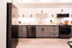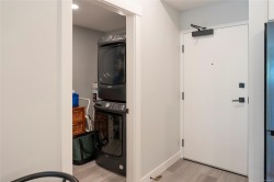 Steps from Nanaimo's Long Lake and North End amenities, this condo pairs modern design with a great location. Expansive windows brighten the open layout, while the kitchen is equipped with top-of-the-line Samsung stainless steel appliances, elegant quartz countertops, and a matching quartz backsplash for a clean, contemporary look. The open living space extends onto the deck through European-style exterior glass doors, perfect for extending your living space outdoors. This condo also features a one-of-a-kind in-suite storage space built in behind the bedroom closet offering practical convenience rarely found in condo living. The bathroom has been upgraded with a tiled walk-in shower, while stylish hardware and individual heat pumps add high-end touches and year-round comfort. One underground parking stall is included and a storage locker. With its unique features and prime setting, this home is an exceptional opportunity for those seeking modern comfort in a desirable Nanaimo location.