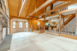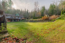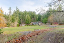 This 5-acre property offers great space & privacy, providing the perfect foundation for a large family or homesteaders. The main home comes ready for your customizing ideas, featuring an open post & beam living room design with a grand floor-to-ceiling fireplace. Enjoy pastoral views bordered by your own private forest from the kitchen & patio windows. There are many great options for a hobby farm or simply enjoying the acreage! Outside, you have a paved sports court & sunny Roman brick patio, perfect for entertaining. Enjoy incredible flexibility with two outbuildings that could be converted to carriage homes or full shops, check with the RDN for any plans you may have. Recent upgrades include an electronic gate, twin 200 amp electrical service, a heat pump, new deck surface & railings on the covered portion and much more. All this and still in close proximity to convenience and amenities, call to view today! All msmts are approx. and should be verified if important.