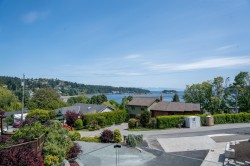 Welcome to Doctors Rd in beautiful Departure Bay—home to this stunning new 5-unit luxury townhome complex with sweeping ocean and mountain views. This is 1 of 4 two storey duplex units. Upstairs, the main living space is bright and open with views of Dep Bay, featuring engineered hardwood floors, a modern kitchen with stainless steel appliances, stone countertops, custom wood cabinetry, a cozy dining nook, a welcoming living room with an electric fireplace, a 2-piece powder room and access to a private patio w gas BBQ hook up. The spacious 11'x16' primary bedroom has a walk-in closet with custom high end shelving, and a sleek 4-piece ensuite boasting heated tile floors, a custom tiled shower and high end fixtures. The entry floor offers two additional beds, a stylish 4-piece bath, a laundry/storage room, and an attached 11'x25' garage w roughed in EV charger. Each unit additionally has: high efficiency gas furnace, A/C, high end closet organizers, hardi plank exterior, full landscaping
