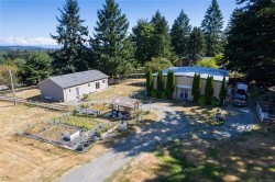 The standout feature of this 2.45-acre property is the impressive 2,900 sqft industrial warehouse—an incredibly rare find this close to town. With flexible spaces for offices, meeting rooms, storage, or production, it’s ideal for business use, trades, hobbies, or anyone needing serious workspace. A second large garage/shop adds even more room for vehicles, equipment, or projects. Beyond the outbuildings, the property includes multiple dwellings offering excellent flexibility. The 1920s 2bed, 2bath main home features 9-foot ceilings, a warm living area, a loft-style second bedroom & updated electrical, plumbing, natural gas heating/AC. A detached cottage creates options for guests, an office, or a studio. A modern 2018 3bed, 2bath manufactured home provides great separation for extended family or rental potential. With AR2 zoning, municipal water & direct access to Mount Benson, this property combines functionality, versatility & a country setting just minutes from Nanaimo.