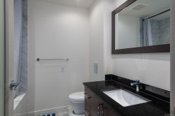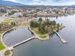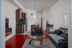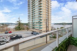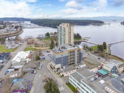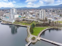 Welcome to your dream condo, perfectly situated just a 5 minutes stroll from Nanaimo's vibrant downtown and waterfront. Step inside to discover an open concept kitchen and living area, featuring elegant heated tile floors and a sleek quartz countertop. The 10ft high ceilings add to the sense of space and luxury. The unit also includes hot water on demand for ultimate convenience. Enjoy your morning coffee or evening sunset on the spacious balcony, offering unobstructed views of the ocean and mountains. The building also features a workout room conveniently located by the lobby. Additional perks include one underground parking spot and the flexibility of allowing rentals. Must see!
