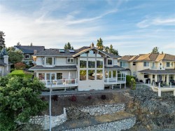 Rare executive classic home in Stephenson Point Estates offering spectacular views of Departure Bay, BC Ferries, Float Planes, Mt. Benson & Gulf Islands. Southern exposure w/ year-round daylight & amazing sunrises. Main level entry featuring 4 BD on the upper level w/ a large Primary & ensuite, storage—ideal for families. Must see 2-storey vaulted cedar ceiling in the living room sets a luxurious west coast tone. Formal dining room, separate den & family room & another sunny deck offers space for multi-family use & entertaining. The spacious kitchen has plenty of cupboards & counter space, access to a sunny deck, laundry room, bathroom, storage, & double garage. Walk-in crawl space w/ more storage & convenient utility access. A short drive to amenities including Departure Bay Beach, Cottle Creek Park trail, transit, Pipers Lagoon & Drip Coffee Social. Lovingly maintained by long-time owners in a peaceful neighbourhood. A must-see in one of Nanaimo's sought after areas - don't miss out!