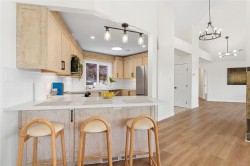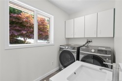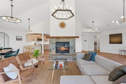 Perched on a rare 16,944 sq ft lot in Hammond Bay, this 3,242 sq ft 3 bed/3 bath home showcases stunning ocean views from nearly every room. The open-concept main level features 15-ft vaulted ceilings, expansive windows, and 700+ sq ft of oceanview decks. The brand-new kitchen boasts quartz counters, peninsula seating, and never-used appliances. The primary suite includes a walk-in closet, renovated ensuite, and private deck access. Downstairs offers a spacious family room, guest suite with ensuite, and walkout to the large backyard. Extensive 2025 updates ($180K+) include new kitchen, baths, appliances, PEX plumbing, flooring, paint, decks, and more. Added features: double garage, heat pump, built-in vacuum, and private yards. Conveniently close to schools, shopping, parks, ferry, and NRGH. A rare move-in ready home with space, style, and unmatched ocean views in one of Nanaimo’s most desirable neighbourhoods
