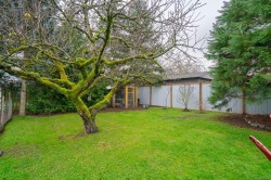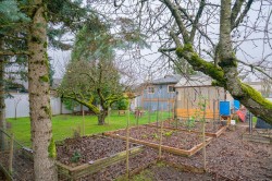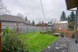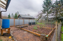 Cute as a button! In this price point it's rare to find a move in ready single family home, but here it is. 1 Bedroom plus Den, 1 Bathroom home. Cozy and spotless with an extremely functional layout, offering ample living area, kitchen with counter space, cabinetry and dining, including an office nook. The Den is currently in use as a laundry utility room, but creativity allows for many other options. The star of this listing is truly the property, a private fenced gardeners paradise. The flat almost 8700sqft lot with mature trees features lane access (allowing future potential of carriage home), greenhouse, chicken coop, fire pit area, rv parking and meticulously maintained gardens. Further items to note: basement storage/workshop for bikes, kayaks, tools etc. laundry hookup in the basement and two covered entries to the home. Already prepped for pets with secured fencing. Enjoy this convenient central location within walking distance to shopping, transit, schools, parks and trails.