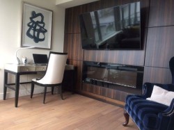 FURNISHED "The Peninsula" is LUXURIOUS WATERFRONT living. Situated along the Fraser River you'll love the water, mountain and city views from your EXTRA LONG balcony. New hardwood floor throughout. No detail was left out with this 1 bed + FLEX room w/ Engineered hardwood floors, 2 FULL SPA INSPIRED bathrooms w/ quartz counters and porcelain tiled floors, a spacious sophisticated kitchen w/ Integrated GAGGENAU appliances and quartz counter tops, wall mounted electric fireplace w/custom wood feat, GEOTHERMAL heating/cooling, 1 secured parking. Concierge, GYM, HOT TUB. STEAM ROOM, guest suite, Panorama Club with guest Chef's Table kitchen are also a part of the experience. Please email office@macgregorrealty.ca with dates required by, # of people renting and your CELL #. NO PETS.