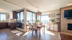 Welcome to this Beautifully Renovated residence w/nearly 1,200 sqft. living space in Downtown New West! This residence offering stunning WATER, MOUNTAIN & CITY VIEWS. Designed with quality and style in mind, it features a modern kitchen with quartz countertops, sleek cabinetry, and a built-in coffee machine - perfect for your morning espresso. The spa-inspired bathroom is w/ premium fixtures & matching quartz surfaces. Relax by the gas fireplace that warms the entire space in Winter. Every corner reflects high-quality craftsmanship, thoughtful storage solutions, and the owner's exceptional care. W/ direct access to the SkyTrain station, you're steps away from shops, restaurants, schools and the riverfront. Truly a "show home" experience - move in and enjoy modern luxury and convenience!