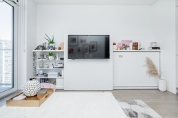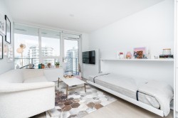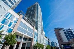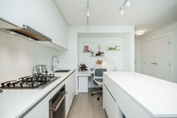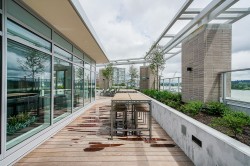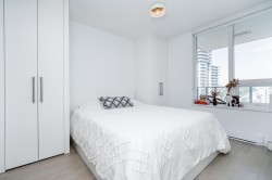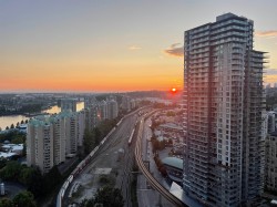 STUNNING city, mountain & river views from this luxury concrete tower RIVERSKY 1 built by Bosa close walking distance to the Quay boardwalk, transit, Skytrain, shopping & all amenities. Meticulously cared for 1 Bed/1 Bath, 530 sq ft*, NW facing suite features gas cooktop (included in maint fees), quartz counters, SS appliances, Island w/ built in dining table, built in desk, single Murphy Bed, laminate flooring, floor to ceiling windows, insuite laundry & spa like bath. Generous covered deck to enjoy the sunsets all year round! Fantastic building w/ fully equipped gym, clubhouse w/ fireside lounge & full kitchen, rooftop decks & BBQ, bike storage, parcel/cold storage & onsite concierge. 1 parking & 1 locker. Pets & Rentals OK! **OPEN HOUSE SATURDAY DEC 6TH 12:00-1:30PM**