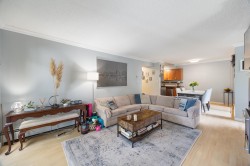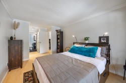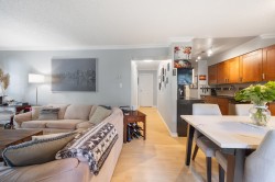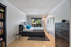 2-Bedroom Corner Unit – 905 sq ft. 8ft Ceilings. Updated bright corner suite with in-suite laundry! Enjoy a modern kitchen with updated appliances, a renovated bathroom featuring a custom glass rain shower, laminate flooring, crown mouldings, cozy gas fireplace. Two balconies offer great outdoor space: 31’6” x 3’11” and 11’8” x 5’10”, complete with a custom storage bench. Recent building updates include plumbing (2007), roof (2008), and balconies (East 2023, North 2024). Maintenance fees cover heat, hot water, gas & water. Includes 1 parking stall and storage. Pets welcome! Conveniently located 10-min walk to SkyTrain, near bus transit, New Westminster Quay, Royal City Centre, Queenspark, Douglas College, and close to highways. Perfect for first-time buyers, downsizers, or investors.