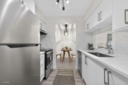 FULLY RENOVATED + MOVE-IN READY! Welcome to Fraser Mews — a beautifully updated 1 bedroom home offering modern finishes, a functional layout, and incredible value. Recent upgrades (2025) include new Kitchen cabinets, Quartz countertops, stainless steel appliances, Flooring, Paint, Lights, and Bathroom finishes. Spacious primary bedroom with shared ensuite, bright living area, and a private balcony perfect for relaxing and entertaining. Located on a quiet cul-de-sac steps to Queen’s Park, Canada Games Pool, transit, schools, Royal Square Mall, and SkyTrain. Pets and rentals allowed (as per bylaws). Low strata fees, 1 secured parking stall. Shared laundry on each floor. Make this home yours before the Holidays! Schedule a viewing that you will love!