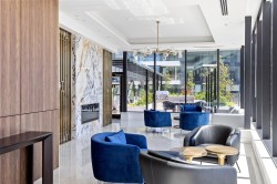 1506 captures the North Shore views: the city skyline, ocean, Lions Gate Bridge, mountains & serene pool view below. This modern 2-bed, 2-bath corner residence offers over 1,000 sqft of refined living with south, west, and north exposures, showcasing breathtaking scenery from every angle plus two spacious balconies. This unit features floor-to-ceiling windows, a chef-inspired kitchen with premium integrated appliances, a gas cooktop, an oversized waterfall quartz island, LED lit cabinets. Luxury upgrades include motorized blinds, high-end custom closet millwork in the ensuite, a built-in wine fridge, pot lights in the bedrooms, and an elevated palette of premium finishes throughout. Parking and bigger storage. Pics, Floorplan, Pics & video are for 1406!