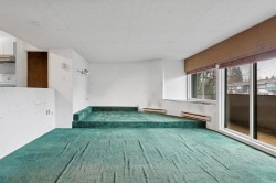 Welcome to Wendral Court, a boutique concrete building tucked away on a quiet street in the heart of Lower Lonsdale. This 562 sq ft home is offered in original condition and presents a great opportunity for buyers looking to renovate and customize. The open, studio-style layout features a sunken living area and a raised sleeping platform, with ample space to add a partition for enhanced bedroom privacy. The split-level design creates an airy, loft-like feel and a sense of separation within the open layout. Additional features include a connection for in-suite laundry, a generous pantry or storage closet off the kitchen, and a walk-in closet at the entry. Just steps to Lonsdale Quay Market, Shipyards, restaurants, and the SeaBus for an easy downtown commute.