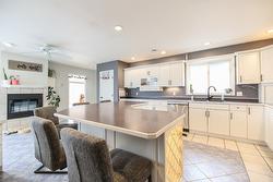 The property includes 2 acres of cherries and apples under lease until October 2025, with automated irrigation throughout. The main residence offers 5 bedrooms and 4 bathrooms, a large master suite, main-floor laundry, a fireplace, and a versatile lower level with separate entrance. A high-efficiency furnace and A/C were installed in 2022, and the oversized attached garage provides added flexibility.