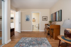 Rare 2 Bdrm, 2 Bath bright & sunny south facing unit in Madison Ct. This unique 55+ complex consists of individual patio homes with a shared community space. Maint. fees incl weekly light housekeeping. This one level patio home designed for accessibility & care free living has much to offer while you age in place. New hot water tank, updated flooring, blinds, vaulted ceiling, open floor plan and large south facing windows that flood the suite with natural light. You can access your unit from the south facing patio and private entrance or enter through the secured main door with intercom system. The community social space has comfy seating around a gas fireplace and a common area where you can enjoy puzzles or games with the neighbours, and you can plant your veggies in the community garden. Laundry is included in fees and a only a few steps from the unit. Enjoy sharing with only seven neighbouring suites in your building. Non-smoking building & 1 small dog or cat friendly (see bylaws).