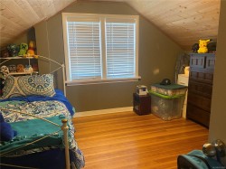 Welcome to this charming 4-bedroom home situated on a spacious, fenced corner lot. Warm wood floors and updated vinyl windows bring natural light and comfort throughout. The main floor features a bright living room, an inviting eat-in kitchen with soft-close cabinets, a convenient mudroom, primary bedroom, and a 4-piece bathroom. Upstairs, you'll find two more bedrooms, while the lower level offers a large rec room and a fourth oversized bedroom—ideal for guests, a home office, or additional living space. Step outside to enjoy the deck overlooking the expansive yard, complete with lots of room for gardens and a mature pear tree. Close to recreation, schools and shopping, this home blends warmth, functionality and convenience. All measurements are approximate, please verify if important.
